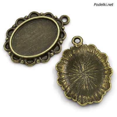 рамка с узором для овального кабошона 18x13 мм 0006111 бронзовый цвет 27x20 мм
