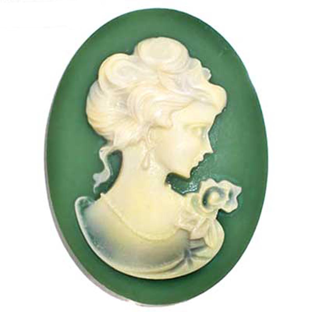 Кабошон-камея из смолы Женщина 0006141 зеленого цвета овальный 39x29 мм