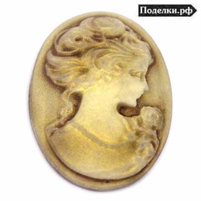 Кабошон-камея из смолы Женщина 0006144 кофейного цвета овальный 24x18 мм