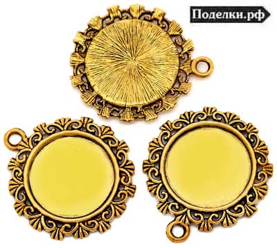 Рамка Узорная для круглого кабошона 20 мм 0006165 золотой цвет 34x30 мм