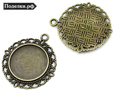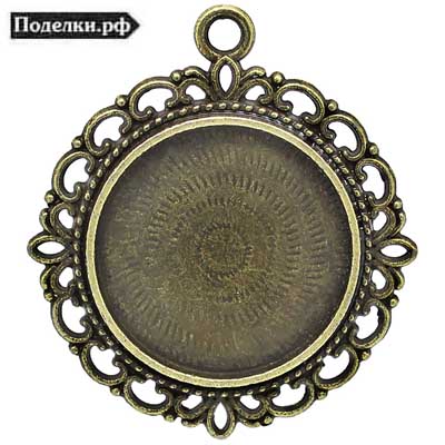 Рамка Узорная для круглого кабошона 25 мм 0006174 бронзовый цвет 37x34 мм