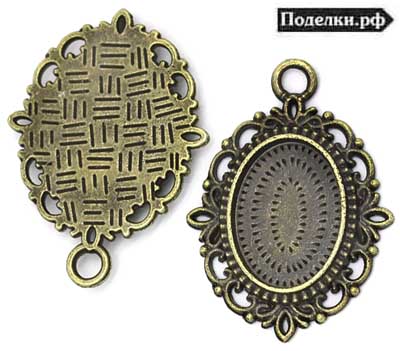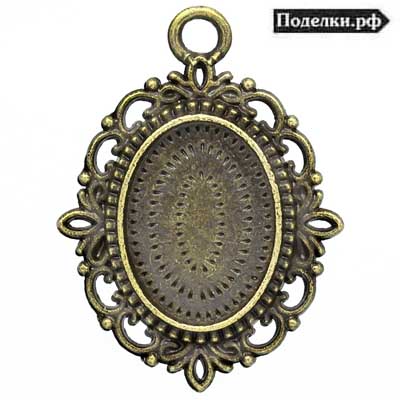 Рамка с узором для овального кабошона 19x14 мм 0006175 бронзовый цвет 36x27 мм