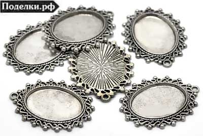 Рамка Узорная для овального кабошона 25x18 мм 0006179 серебряный цвет 38x29 мм
