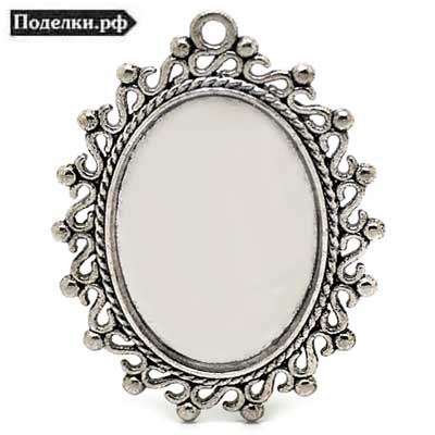 рамка узорная для овального кабошона 25x18 мм 0006179 серебряный цвет 38x29 мм