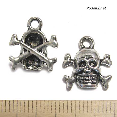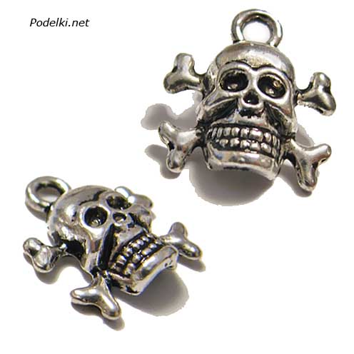подвеска череп с костями 0006212 серебряный цвет 13х13 мм