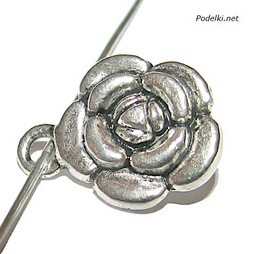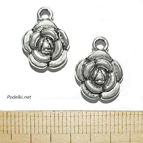 Подвеска Роза объемная 0006221 серебряный цвет 12x15х3 мм