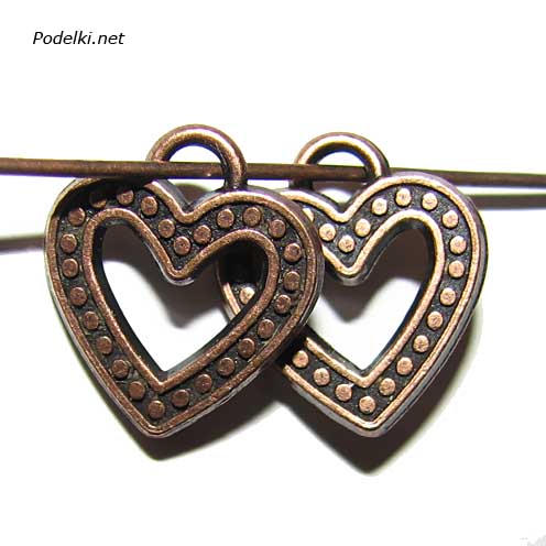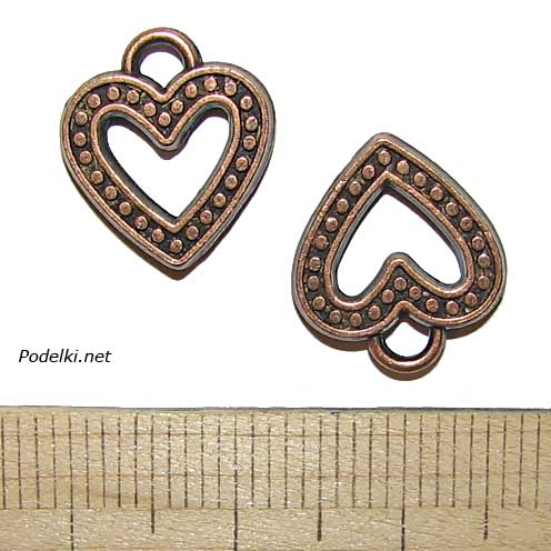 Подвеска Сердце пустое 0006225 медный цвет 15x12х2 мм
