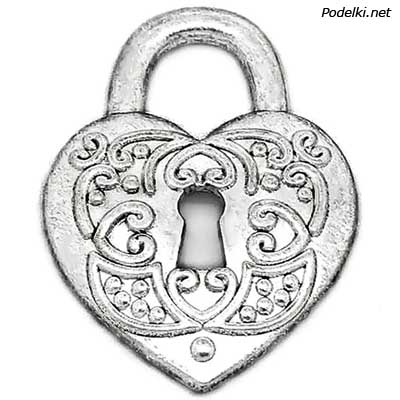 Подвеска Сердце Замок 0006239 серебряный цвет 37x28 мм
