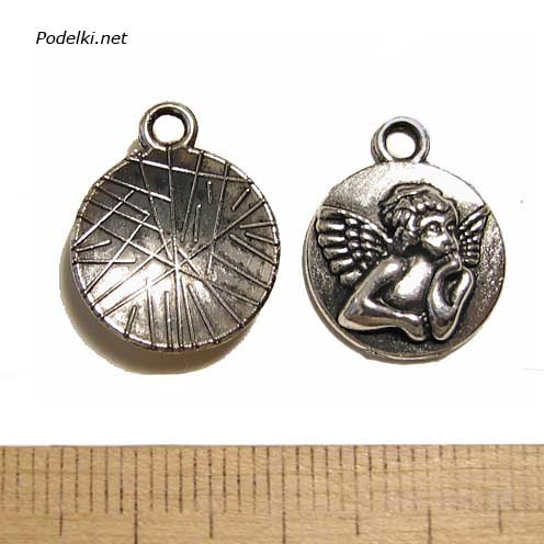 Подвеска Ангелочек в круге 0006256 серебряный цвет 16x19х2 мм