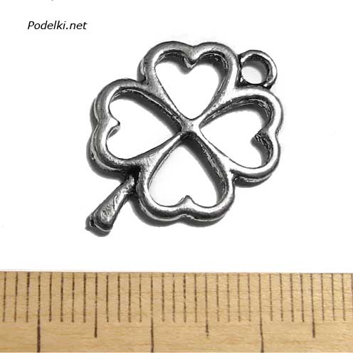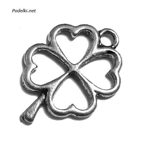 Подвеска Клевер Прозрачный большой 0006274 серебряный цвет 25х17 мм