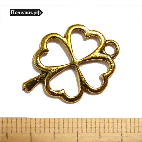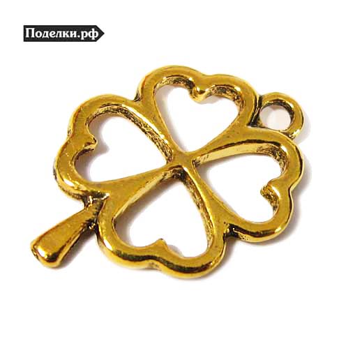 Подвеска Клевер Прозрачный большой 0006287 золотой цвет 25х17 мм