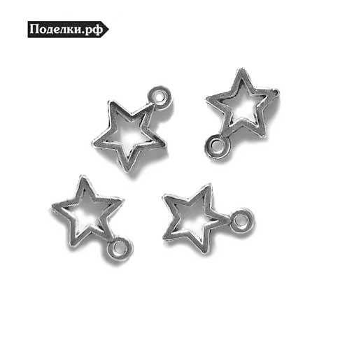 подвеска звездочка прозрачная 0006290 серебряный цвет 12x10 мм
