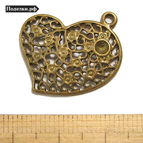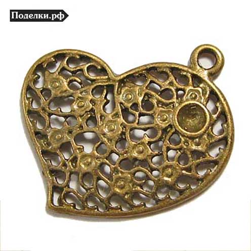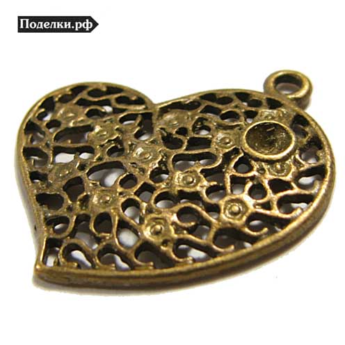 Подвеска Сердце Ажурное 0006291 бронзовый цвет 25x20 мм