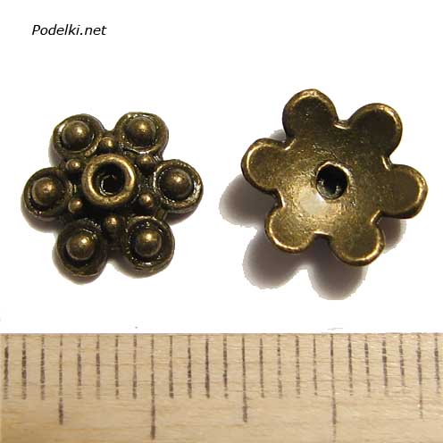 В нашем интернет-магазине можно купить декоративные элементы для бижутерии, в продаже крепежная шапочка литая цветок шестилистный с шариками 0006306 бронзовый цвет 10x4 мм и другая фурнитура. Доставка товаров осуществляется в Санкт-Петербурге и по России. Вернуться Назад