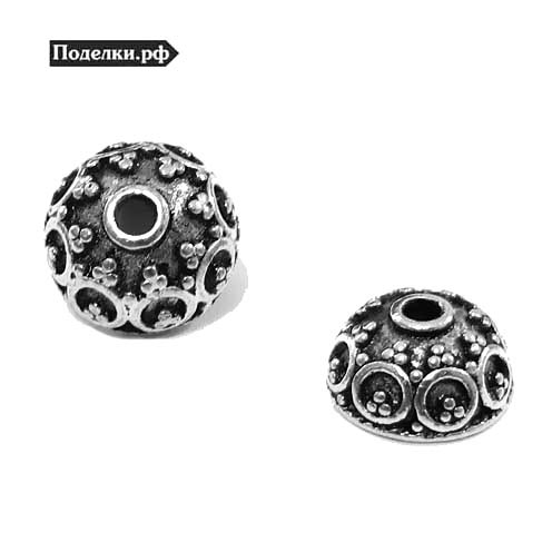 Крепежная шапочка литая Купол с узором 0006325 серебряный цвет 10х10x5 мм