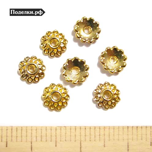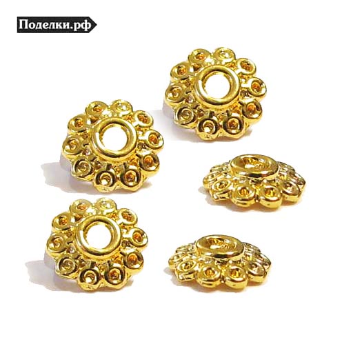 Крепежная шапочка литая Цветочек из кружков 0006327 золотой цвет 6x1 мм
