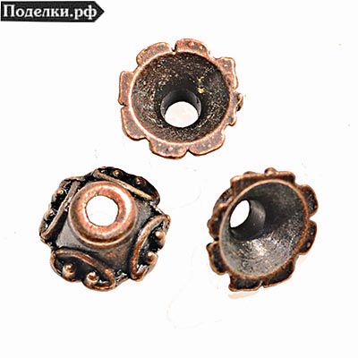 Крепежная шапочка литая Цветок узорный четырехлистный 0006334 медный цвет 7x3 мм