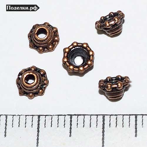 Крепежная шапочка литая Колокольчик мини 0006353 медный цвет 5x3 мм