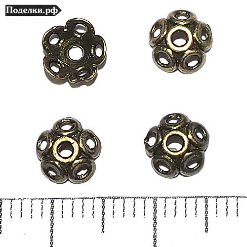 Крепежная шапочка литая Цветок кружочки пятилистный 0006365 бронзовый цвет 7x3 мм