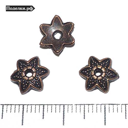 Крепежная шапочка литая Звездочка шестилучевая в точках 0006371 медый цвет 10x2 мм