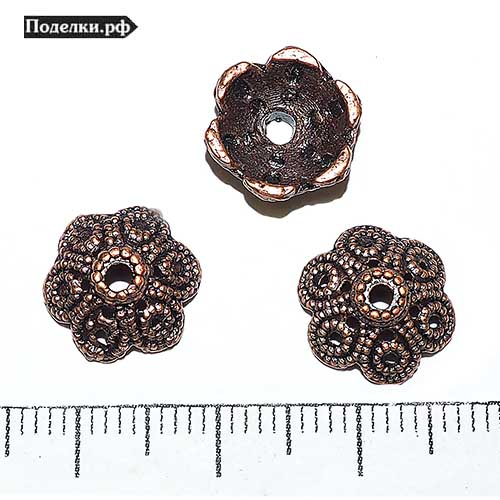 Крепежная шапочка литая Цветок узорный шестилистный 0006376 медный цвет 12x5 мм
