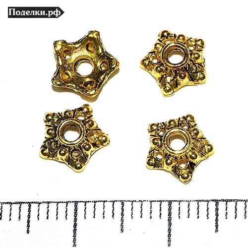 Крепежная шапочка литая Цветок пятилистный 0006381 золотой цвет 8x2 мм