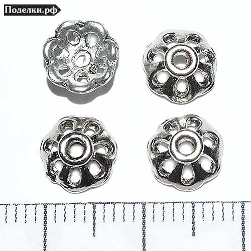 Крепежная шапочка литая Цветок семилистный 0006385 серебряный цвет 8x3 мм