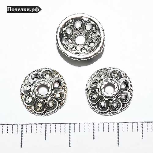 Крепежная шапочка литая Цветок 0006386 серебряный цвет 10x3 мм
