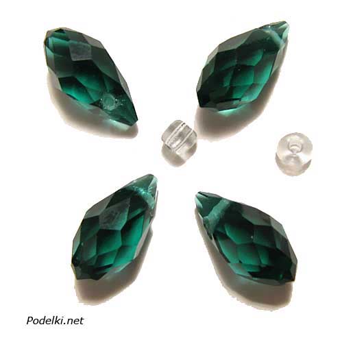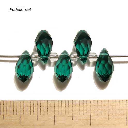 Стеклянная бусина Капля граненая 0006405 изумрудная 10х6х5 мм