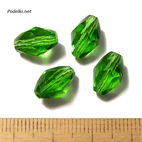 Стеклянная бусина Тюльпан граненая 0006406 зеленая 11х8 мм