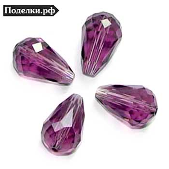 Стеклянная бусина Капля граненая 0006412 лиловая 15x10 мм