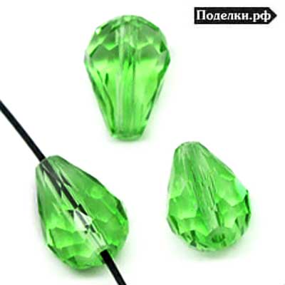 Стеклянная бусина Капля граненая 0006421 салатная 15x10 мм