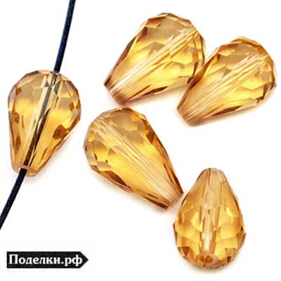 Стеклянная бусина Капля граненая 0006422 шампань 15x10 мм