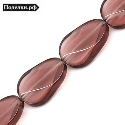 Стеклянная бусина Овал изогнутый 0006425 сиреневый прозрачный цвет 20x13x7 мм