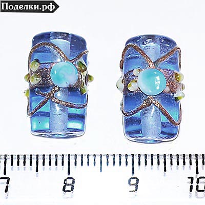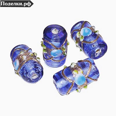 Стеклянная бусина Лэмпворк Цилиндр 0006435 синий с блестящим узором 18x10 мм3