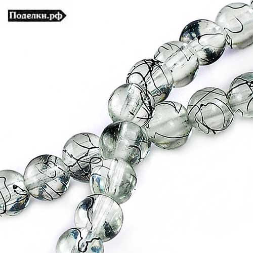 Стеклянная бусина Шарик 0006448 прозрачный с черными полосами 8 мм