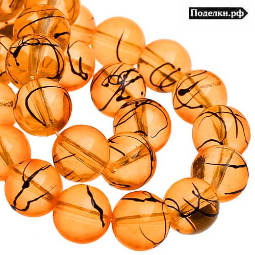 Стеклянная бусина Шарик 0006449 прозрачный оранжевый с черными полосами 10 мм
