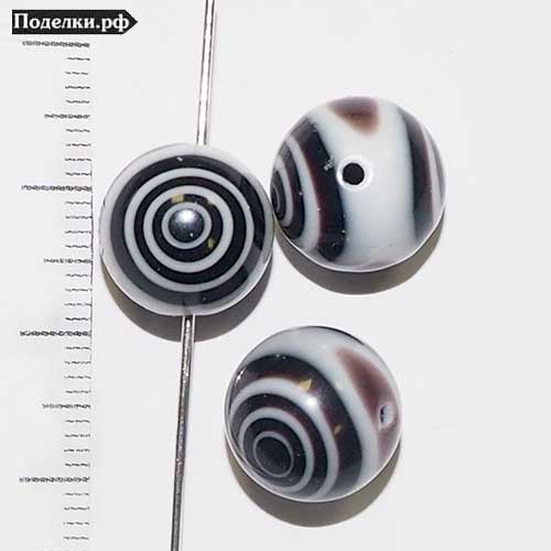 Стеклянная бусина Шарик Спираль 0006460 кофейный с белым прозрачный 12 мм