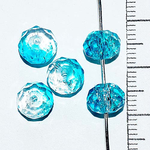Стеклянная бусина Бутон 0006466 граненый бирюзовый с прозрачным 8x5.5 мм