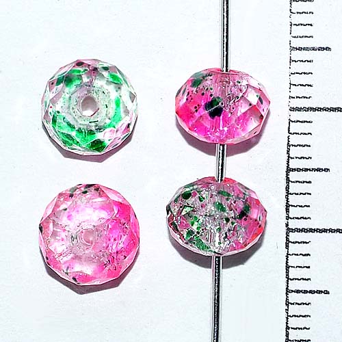 Стеклянная бусина Бутон 0006468 прозрачный срозовым и зеленым 8x5.5 мм