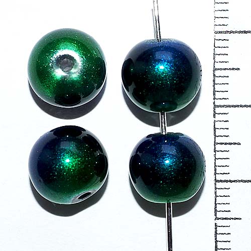 Стеклянная бусина Шарик с покрытием 0006475 сине-зеленый перламутровый 10 мм