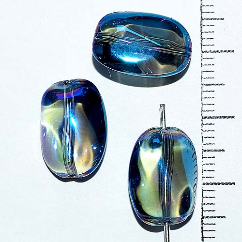 Стеклянная бусина Капля изогнутая 0006483 синий разноцветный перламутровый цвет 24x14 мм