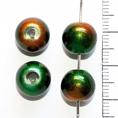 Стеклянная бусина Шарик с покрытием 0006487 оранжево-зеленый перламутровый 10 мм