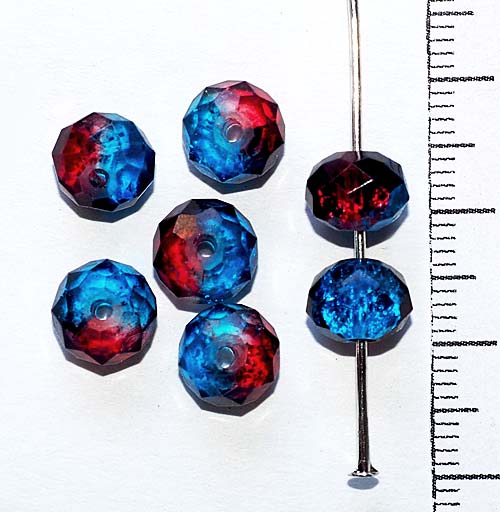 Стеклянная бусина Бутон 0006490 граненый бордовый с синим 8x5.5 мм