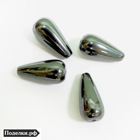 Натуральная бусина Гематит 0006524 капля 20х9 мм