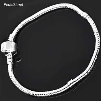 Браслет Пандора цепь змейка с застежкой-клипсой 0006605 серебряный цвет 21 см