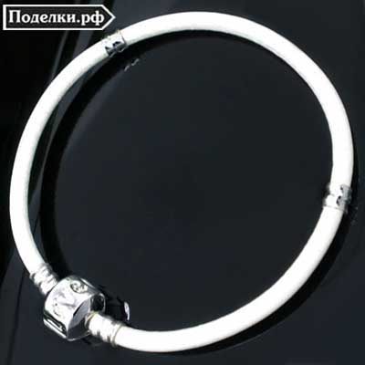 Браслет Пандора белый кожаный Love с застежкой-клипсой 0006611 серебряный цвет 20 см