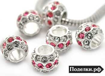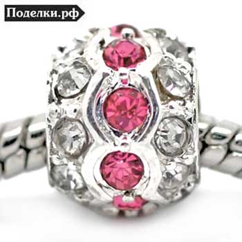Металлическая бусина Пандора 0006616 серебряный цвет с прозрачными и розовыми стразами 10x8 мм