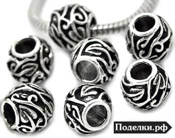 Металлическая бусина Пандора Бочонок узорный 0006621 серебряный цвет 11x11 мм