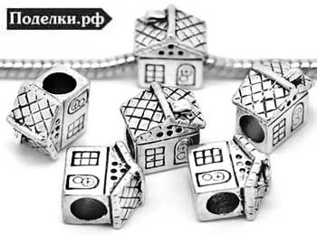 Металлическая бусина Пандора Домик 0006626 серебряный цвет 12x11 мм